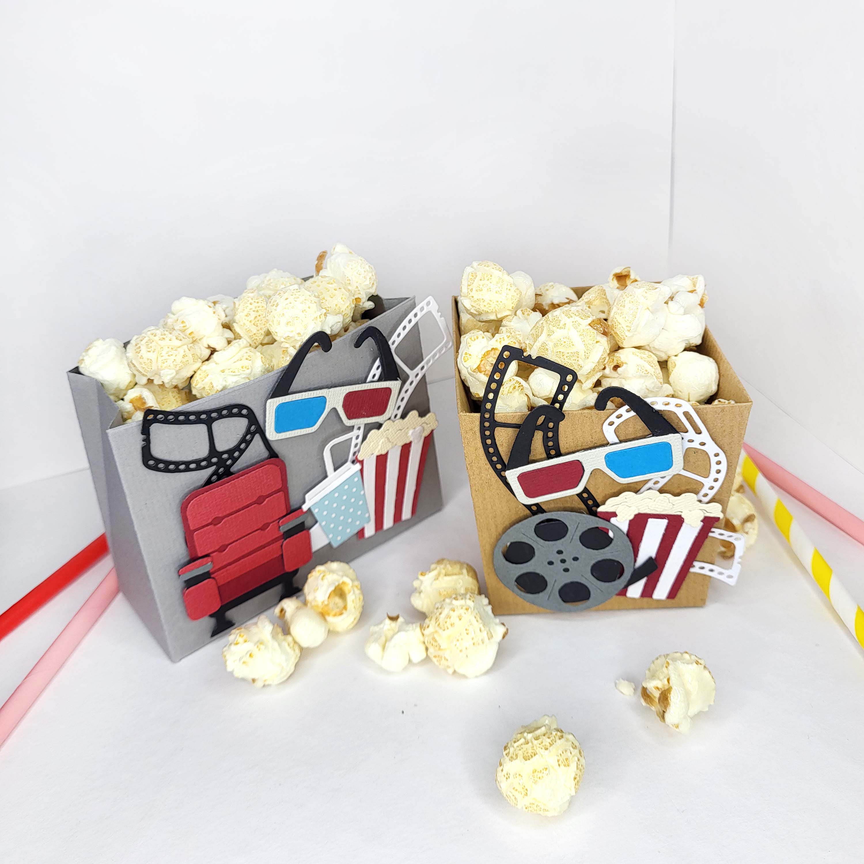 Mit den Stanzen von My Favorite Things ("Movie Icons", "Save Me A Seat") und Magnolia könnt ihr Popcorntüten ganz einfach aufhübschen.