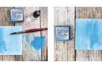 Gebt hier etwas Farbe direkt vom Stempelkissen auf euer Papier. Mit einem feuchten Tuch, könnt ihr die Farbe ganz leicht verwischen und sehr schöne Verläufe erstellen.