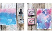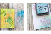 Die Distress Oxide Inks von Ranger erfreuen sich nach wie vor große Beliebtheit. Für viele Kreative ist das Wischen der Farben bekannt, ebenso die Verwendung mit Schablonen oder das Spritzen mit Wasser über die Farbe. Doch da die Stempelkissen sehr gut mit Wasser reagieren, gibt es noch zahlreiche andere Anwendungsmöglichkeiten. Anke zeigt euch in diesem Artikel, was ihr noch alles Spannendes mit den Distress Oxide Inks machen könnt.Der Klassiker. Mit einer entsprechenden feinen Bürste (auch Brush genannt) oder einem Verblender (Blending-Tool) könnt ihr eure Wunschfarben verblenden. Ihr nehmt mit eurem Werkzeug Farbe aus dem Stempelkissen auf und wischt vom Rand eures Papiers die Farbe. Eigentlich ist es auch egal, welches Papier ihr nehmt, es sollte jedoch keine zu glatte Oberfläche haben (wie z.B. Fotopapier oder YUPO Papier), denn wenn ihr mit Wasser arbeitet, muss das Papier dieses aufsaugen können. Cardstock oder Aquarellpapier eignen sich ganz gut dazu.