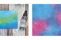 Mit einer Sprühflasche könnt ihr tolle Effekte erzielen. Je weiter ihr sie vom Papier weg haltet, umso feiner die Sprenkel.