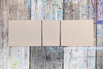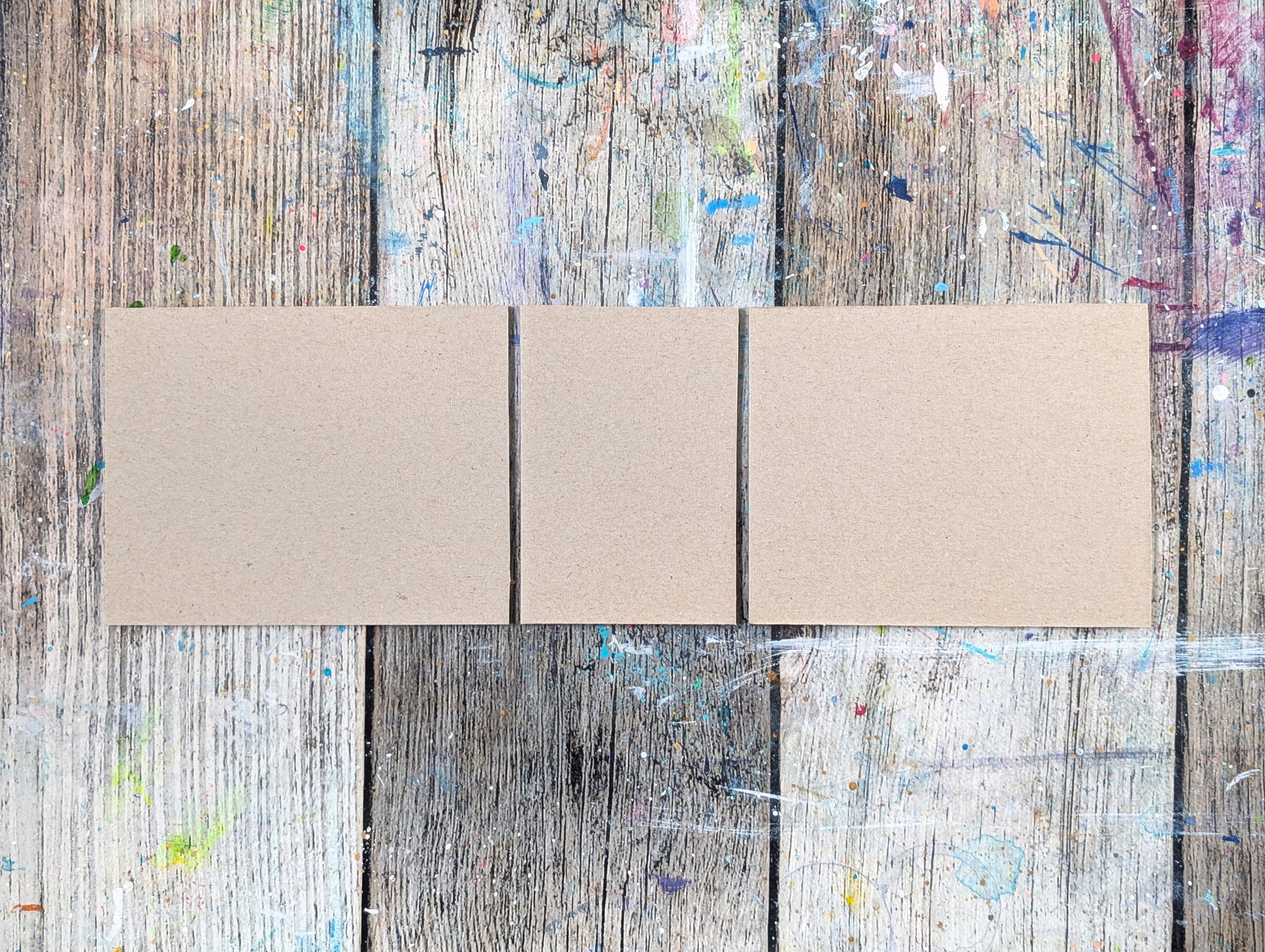 Legt die drei Graupappe Teile mit etwas Abstand vor euch hin. Bedenkt, dass die Pappe sehr stark ist. Lasst lieber etwas mehr Luft, damit sich später alles gut falten lässt. Als Richtmaß hat Anke eines ihrer Falzbeine in die Rille gelegt. So ist der Abstand auch gleich.