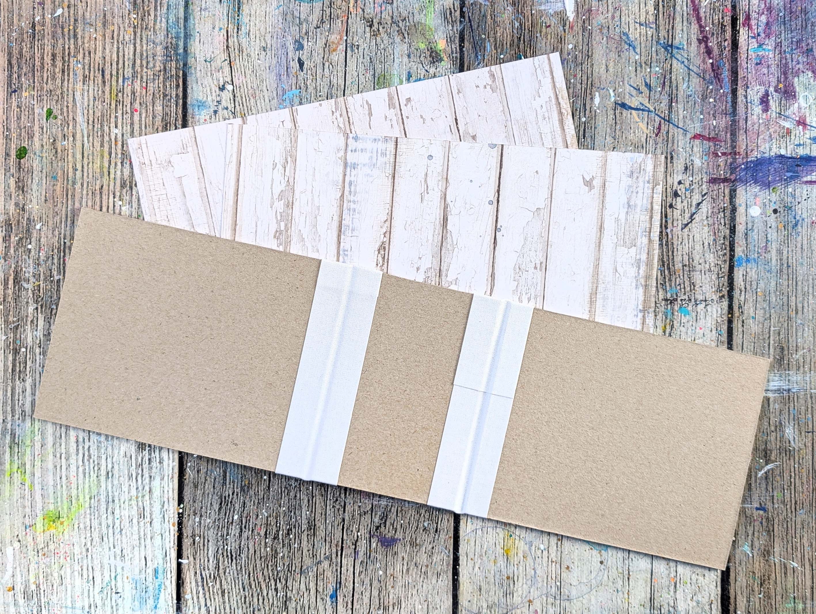 Designpapier zum Auskleiden im Inneren: großes Teil: 9 x 12cm; kleines Teil: 6 x 12cm.