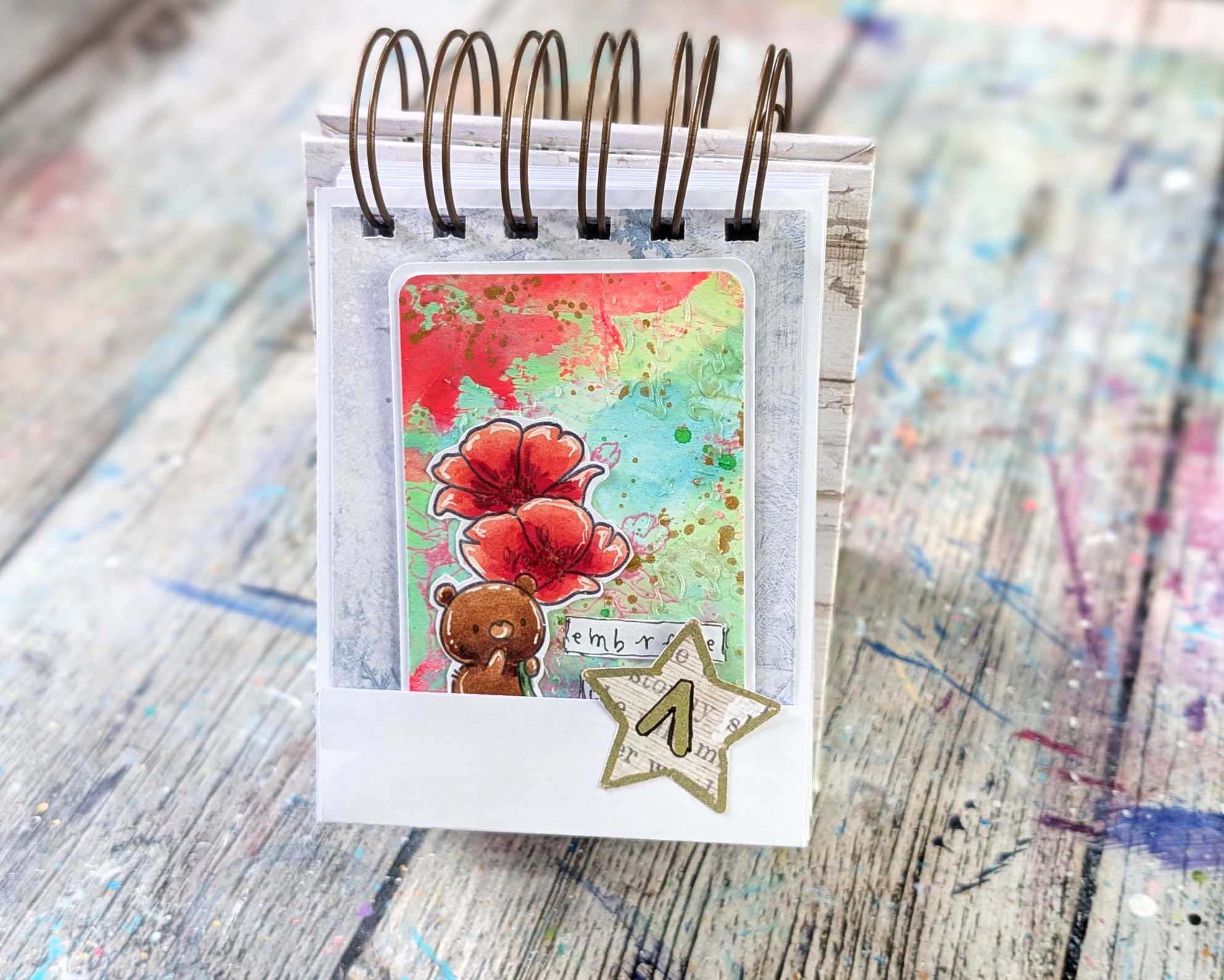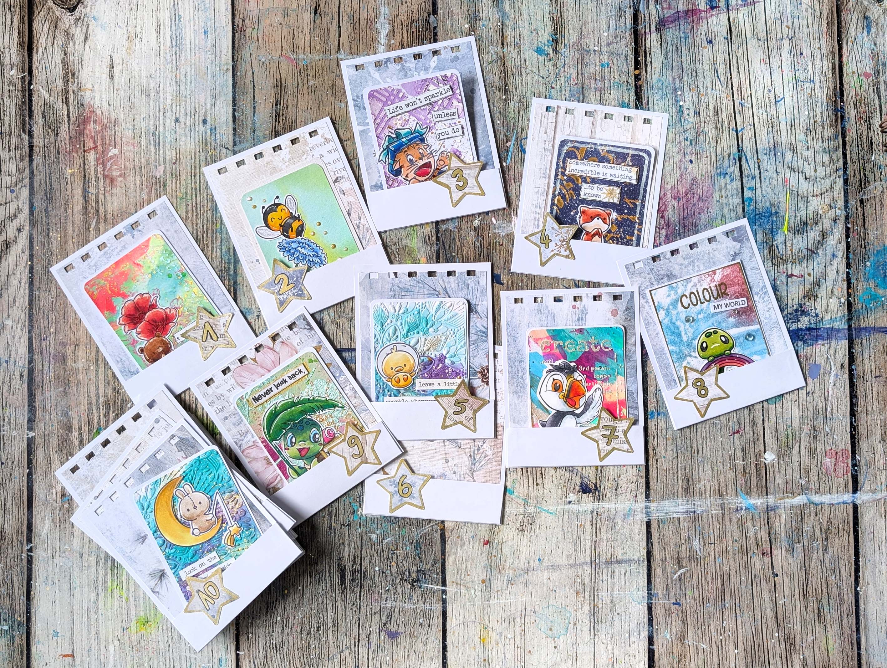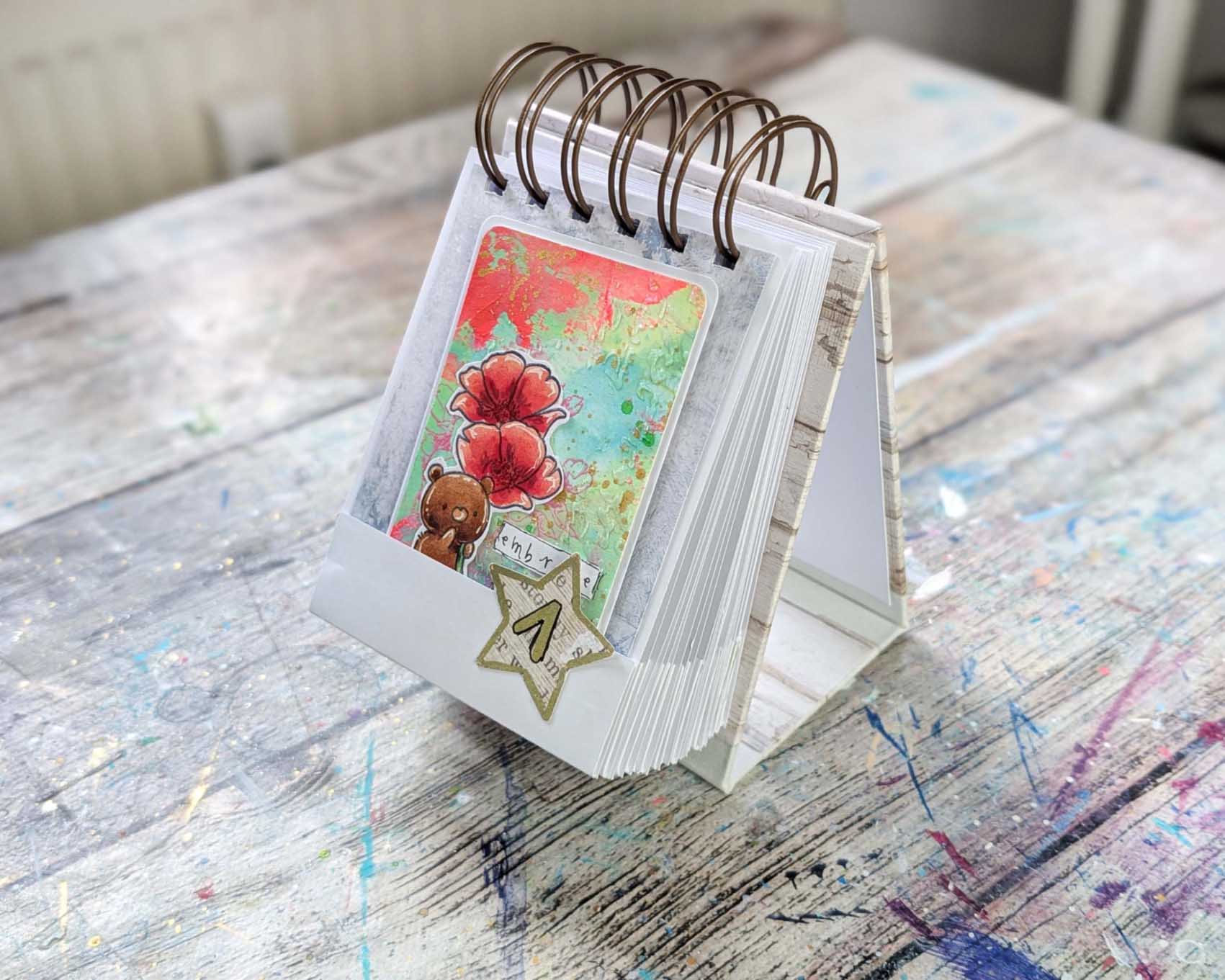 Ihr könnt eure einzelnen Seiten natürlich noch mehr gestalten, Stempelmotive oder Die Cuts hinzufügen. Doch da die ATCs in Ankes Kalender schon bunt genug sind, hat sie die Basis neutral gehalten.