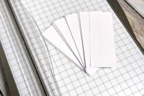Anschließend falzt ihr den Cardstock für die Taschen. Die Taschen für die ATCs an der kurzen Seite falzen bei 1 Inch, an der langen Seite links und rechts je bei 3,25 Inch. Bedenkt eine der langen Seiten offen zu lassen, damit ihr etwas hineinstecken könnt.