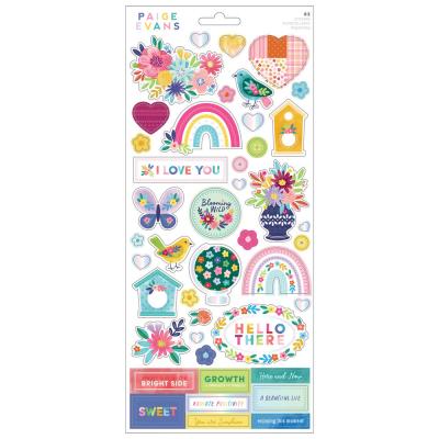 "Blooming Wild" ist eine farbenfrohe Kollektion von American Crafts und Paige Evans, mit Blumen, Blättern, Schmetterlingen, Rahmen und Texten ist alles parat für den kommenden Sommer. Die Farbpalette erstreckt sich von Gelb und Orange über Blau und Grün bis hin zu Rot.