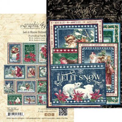 Die Kollektion "Let It Snow" von Graphic 45 zeigt eine verschneite Winterlandschaft. Dort tummeln sich Eisbären, Hasen, Weihnachtssterne und natürlich der Weihnachtsmann auf dem Weg zur Bescherung. In den Farben Rot, Blau, Grün und Beige.