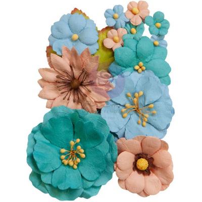 Die Kollektion "Painted Floral" von Prima Marketing. Mit vielen verschiedenen Blumen und Schmetterlingen, Texten und vielen Mustern in kräftigen Rot-, Lachs-, Blau- und Petroltönen.