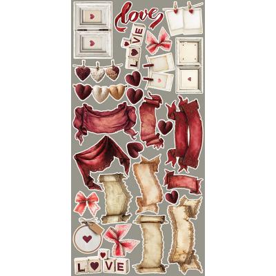 18 doppelseitig bedruckte Bögen in 9 Designs mit Motiven zum Ausschneiden. Das Papier ist 15,25 x 31,5cm groß und hat eine Stärke von 250gsm.