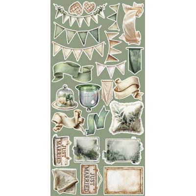 Eine romantische Kollektion mit vielen Motiven rund um das Thema Liebe und Hochzeit, in den Farben, Beige, Grün, Blau und Braun.