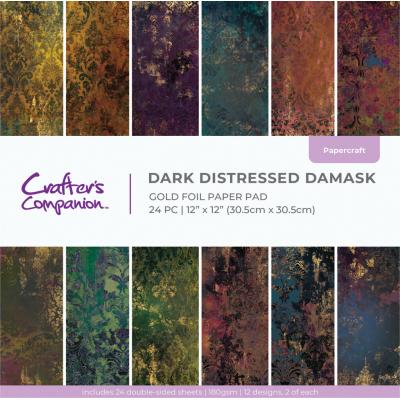 Dark Distressed Damask - Gold Foil Paper Pad