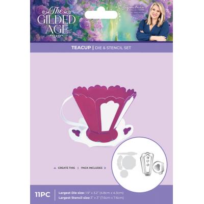 Dieses Set enthält Schablonen und Stanzen, um eine 3D-Teetasse zu kreieren. Für die Stanzen benötigt ihr eine Stanzmaschine (z. B. Sizzix Big Shot).