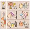 8 kleine Stempel, montiert auf Holzblöcken. Vielseitig ohne weitere Hilfsmittel einsetzbar.