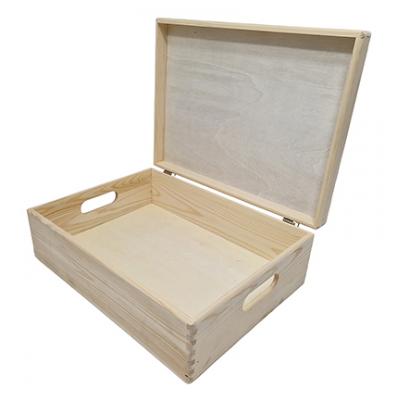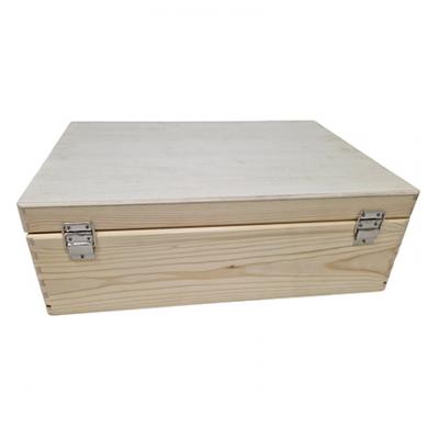 Rechteckige Aufbewahrungsbox aus Holz mit Klappdeckel.