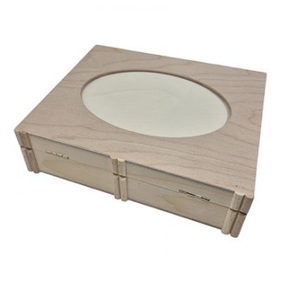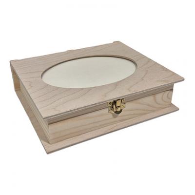Kiefernholz-Fotorahmen in Buchform mit einer Plexiglasfront.