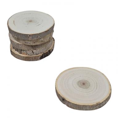 6 dekorative Baumscheiben aus Pappelholz mit Rinde.