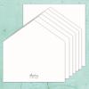 Die Packung enthält 6 Pappseiten in Hausform und 1 quadratisches 8 x 8 Pappbogen - aus dem ein Albumrücken in jeder gewünschten Breite gestaltet werden kann.
