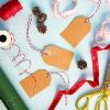 Das Kit enthält 8 Geschenkanhänger, 7m Paketschnur, 5m Bast und 2x 3m Geschenkband.