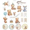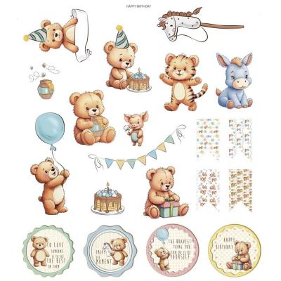 Eine niedliche Kollektion zum Thema Geburtstag. Kleine Esel, Bären, Tiger und Schweinchen, in neutral gehaltenen Farben, überbringen die Geburtstagswünsche.