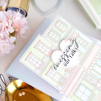 Das Stempelset "Darling District" (Artikel-Nr. 00127274) stammt von der Designerin Inna Moreva. Passend dazu sind im Shop Outline-Stanzschablonen (Artikel-Nr. 00127273) und Schablonen zur schichtweisen Koloration der Motive (Artikel-Nr. 00127272) erhältlich. Der Stempel ist auch als Press Plate (Artikel-Nr. 00127271) für das BetterPress-System von Spellbinders erhältlich.