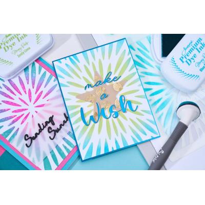 Zusätzlich enthält das Set eine Schablone im Format DIN A6 um schöne Hintergründe herstellen. Dabei könnt ihr Stempelkissenfarben, Strukturpasten, Sprühfarben und vieles mehr verwenden. Der Fantasie sind fast keine Grenzen gesetzt.