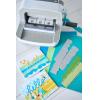 Zur Verwendung der bei uns erhältlichen hochwertigen Stanzschablonen wird eine Stanz- und Prägemaschine (bspw. Sizzix BigShot) benötigt. Die Metallstanzen werden gemeinsam mit Papier durch die Maschine gekurbelt und schneiden dabei die Motive aus dem Papier aus.