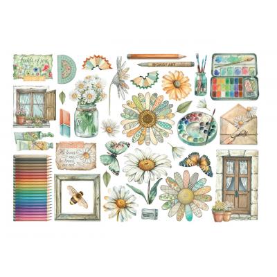 Fröhlich, bunt und kreativ wird es in der Kollektion "Daisy Art" von Stamperia. Die Welt der Blumen wird hier gekonnt mit Kunst (Materialien) kombiniert. Auch die Gartenimpressionen, Schmetterlinge und Muster sind leicht und skizzenhaft gehalten. Wie gewohnt gibt es auch passende Acryl- und Aquarellfarben sowie Rub-Ons, Schablonen, Reispapier uvm. in der Kollektion.