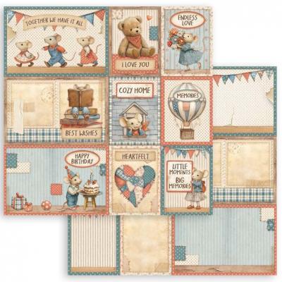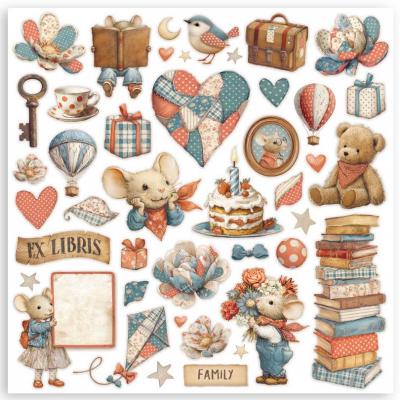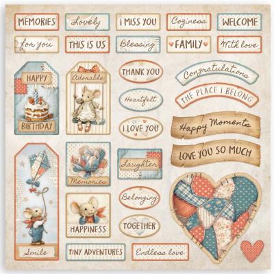 Wie der Titel der Kollektion schon sagt, dreht sich alles um das Thema Familie und Zuhause. Die Hauptrolle spielt eine süße Mäusefamilie. Alle Motive (wie Häuser, Interieur, Leckereien, Ballons und ganz viele Herzen) sind kunstvoll und heimelig gestaltet und sind in den Farben Rot, Beige und Blau gehalten.