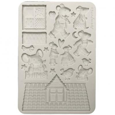 Wie der Titel der Kollektion schon sagt, dreht sich alles um das Thema Familie und Zuhause. Die Hauptrolle spielt eine süße Mäusefamilie. Alle Motive (wie Häuser, Interieur, Leckereien, Ballons und ganz viele Herzen) sind kunstvoll und heimelig gestaltet und sind in den Farben Rot, Beige und Blau gehalten.