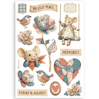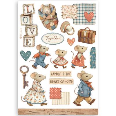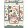 Wie der Titel der Kollektion schon sagt, dreht sich alles um das Thema Familie und Zuhause. Die Hauptrolle spielt eine süße Mäusefamilie. Alle Motive (wie Häuser, Interieur, Leckereien, Ballons und ganz viele Herzen) sind kunstvoll und heimelig gestaltet und sind in den Farben Rot, Beige und Blau gehalten.