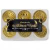 Set aus sechs Siegelwachsstempel aus Metall, welche man auf einen Griff aufschrauben kann.