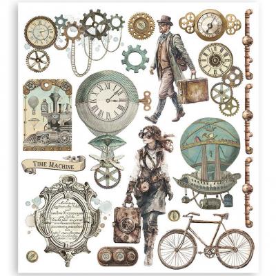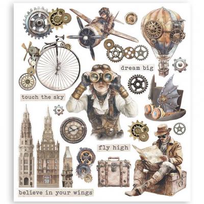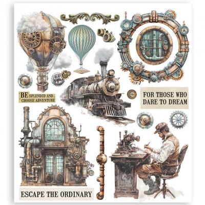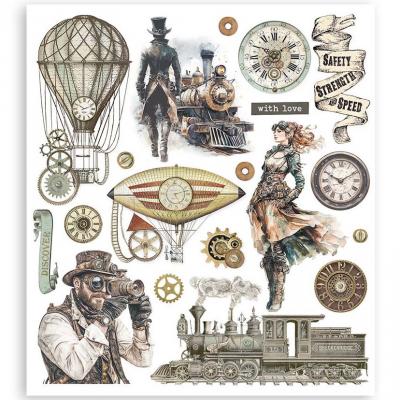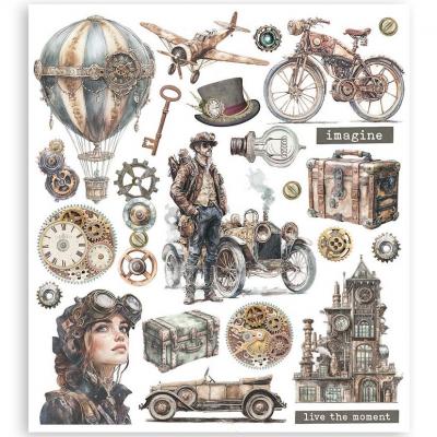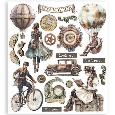 Die Kollektion "Voyages Fantastiques" von Stamperia steckt voller Motive im Steampunk-Stil in den Farben Blau, Teal, Creme und Braun. Die vintage gehaltenen Damen und Herren gehen mit Flugzeugen, Ballons, Autos und Züge auf die Reise.