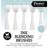 Ein Blending Brush ist ein Werkzeug - Pinsel - zum verblenden von Farben. Bei der Verwendung mit Stempelkissen wird der Pinsel über das Stempelkissen gerieben, bis er Farbe aufgenommen hat und dann vom Rand aus übers Papier verteilt, dabei den Pinsel ohne Druck über das Papier kreisen lassen. Zur Reinigung über ein Papier streichen oder unter fließendem Wasser ausspülen.