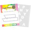 Passend zu der Stanze enthält das Set einen Stencil. Schablone zum einfachen mehrfarbigen Kolorieren der ausgestanzten Elemente.