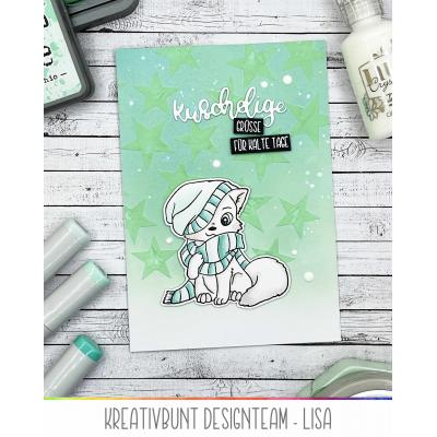 Die äußere Stanzschablone ist gleichzeitig die Outline-Stanze für den Schriftzug der Stanze und den Schriftzug des dazu passenden Stempelsets "Lettering Kuschelige Grüße" mit Artikel-Nr. 00122701. Das Stempelset bietet dazu noch jede Menge ergänzende Texte zum Schriftzug.