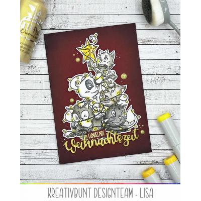 Die äußere Stanzschablone ist gleichzeitig die Outline-Stanze für den Schriftzug der Stanze und den Schriftzug des dazu passenden Stempelsets "Lettering Weihnachtszeit" mit Artikel-Nr. 00120630. Das Stempelset bietet dazu noch