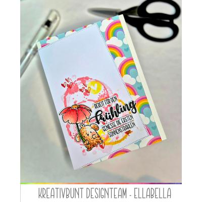 Das passende Stanz-Set "Layered Frühling" (Artikel-Nr. 00125178) enthält das Wort "Frühling" in gleicher Größe als Stanzschablone sowie die Outline-Stanze für den gestempelten oder gestanzten Schriftzug.