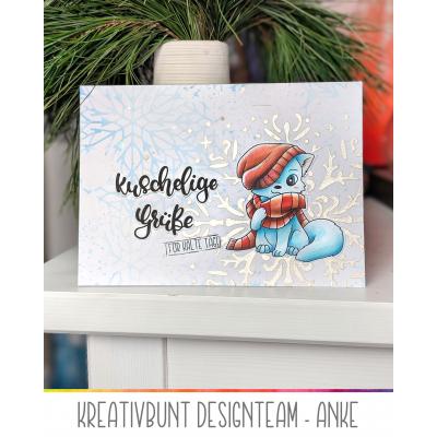 Das passende Stanz-Set "Layered Kuschelige Grüße" (Artikel-Nr. 00122702) enthält die großen Schriftzüge in gleicher Größe als Stanzschablone sowie die Outline-Stanzen für die gestempelten oder gestanzten Schriftzüge.