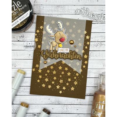 Das passende Stanz-Set "Layered Weihnachtszeit" (Artikel-Nr. 00120631) enthält die Schriftzüge "Weihnachten" und "Weihnachtszeit" in gleicher Größe als Stanzschablone sowie die Outline-Stanzen für die gestempelten oder gestanzten Schriftzüge.