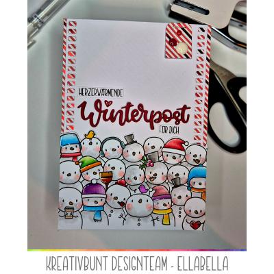 Das passende Stanz-Set "Layered Winterpost" (Artikel-Nr. 00121724) enthält den Schriftzug "Winterpost" in gleicher Größe als Stanzschablone sowie die Outline-Stanze für den gestempelten oder gestanzten Schriftzug.